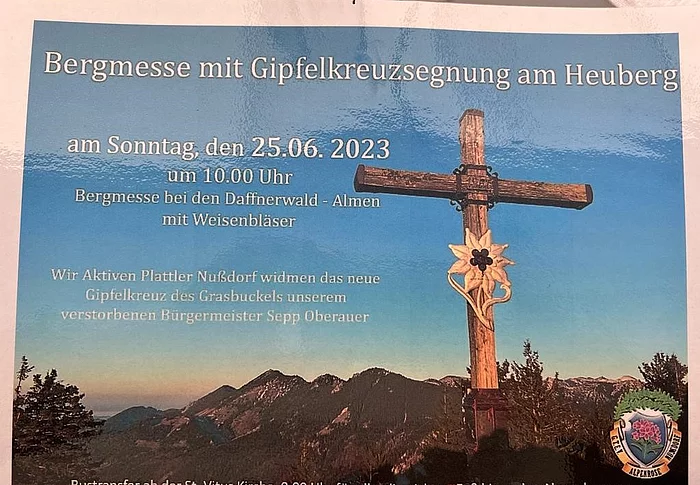 Die Aktiven Plattler Nußdorf widmen das neue Gipfelkreuz des Grasbuckels dem verstorbenen Bürgermeister…